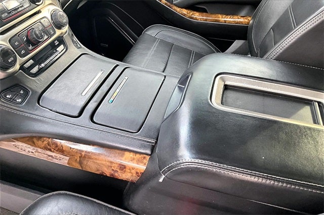 2015 GMC Yukon Denali 4WD, 3rd row seats: split-bench, 5 Auxiliary 12-volt Power Outlets, Adaptive suspension, Adjustable pedals, AppLink/Apple CarPlay and Android Auto, Automatic temperature control, Black Assist Steps w/Chrome Strip, Bose Centerpoint Surround Sound 10 Speaker System, Color-Keyed Heated Leather-Wrapped Steering Wheel, Driver Alert Package, Emergency communication system: OnStar Directions & Connections, Enhanced Safety Package, Exterior Parking Camera Rear, Front Bucket Seats, Fully automatic headlights, Garage door transmitter, Hands Free Power Liftgate, Head-Up Display, Heated & Cooled Full-Feature Reclining Bucket Seats, Heated front seats, Heated rear seats, Heated steering wheel, Inside Rear-View Auto-Dimming Mirror, Integrated Trailer Brake Controller, Interior Movement Sensor, Magnetic Ride Control Suspension Package, Memory Package, Navigation System, OnStar Basic Plan For 5 Years, OnStar w/4G LTE, Passive Entry System, Perforated Leather-Appointed Seat Trim, Power Rear Liftgate, Power Second Row Bucket Seats, Power Tilt & Telescopic Steering Column, Power Tilt-Sliding Sunroof w/Express-Open/Close, Power-Adjustable Pedals For Accelerator & Brake, Preferred Equipment Group 5SA, Premium audio system: IntelliLink, Push Button Keyless Start, Rain sensing wipers, Rear Cross-Traffic Alert, Rear Seat Blu-Ray/DVD Entertainment System, Remote Keyless Entry, Safety Alert Seat, Security system, Self-Powered Horn, Side Blind Zone Alert w/Lane Change Alert, Steering wheel memory, Steering wheel mounted audio controls, Touring Package (DISC), Universal Home Remote, Vehicle Inclination Sensor, Ventilated front seats, Wheels: 20 x 9 Ultra Bright Machined Aluminum, Wireless Charging.