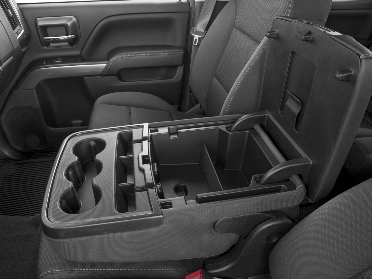 - Seats, front 40/20/40 split-bench, 3-passenger, available in cloth or leather includes driver and front passenger recline with outboard head restraints and center fold-down armrest with storage. Also includes manually adjustable driver lumbar, lockable storage compartment in seat cushion, and storage pockets. (Leather with (KA1) heated seat cushions and seat backs is an available extra charge option with (H1Y) Jet Black leather appointed interior trim and requires (PCM) LT Convenience Package, (PDA) Texas Edition or (PDU) All Star Edition. Includes (AG1) driver 10-way power seat-adjuster with (PCM) LT Convenience Package, (PDA) Texas Edition or (PDU) All Star Edition.)