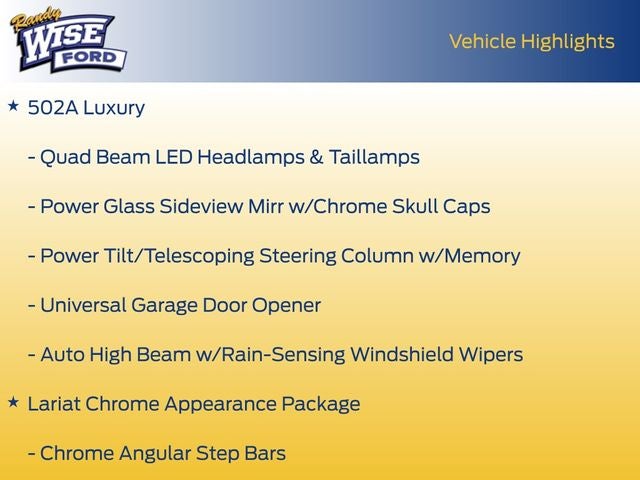 Lariat Luxury (502A Package): Indulge in a Black Leather-Trimmed interior with Heated and Ventilated Front Seats, Heated Rear Seats, and a Heated Steering Wheel.