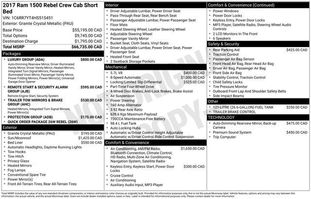 2017 Ram 1500 Rebel 4WD Crew Cab – HEMI 5.7L V8 – Granite Crystal Metallic