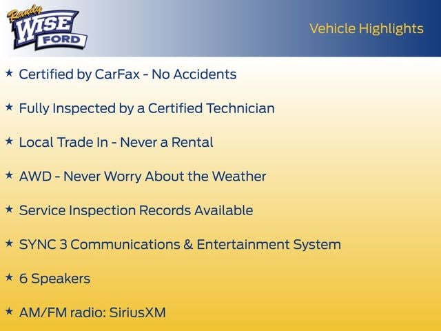 - SYNC 3 Communications & Entertainment System -inc: enhanced voice recognition communications and entertainment system, 8" LCD capacitive touchscreen in center stack w/swipe capability, AppLink, 911 Assist, Apple CarPlay and Android Auto compatibility and 2 smart-charging USB ports