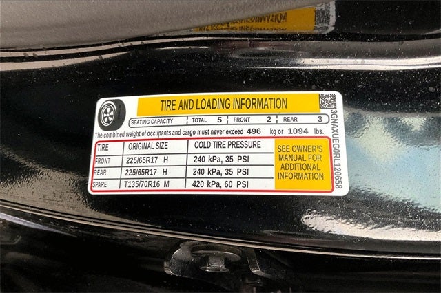 - Tires, P225/65R17 all-season blackwall (AWD only.)